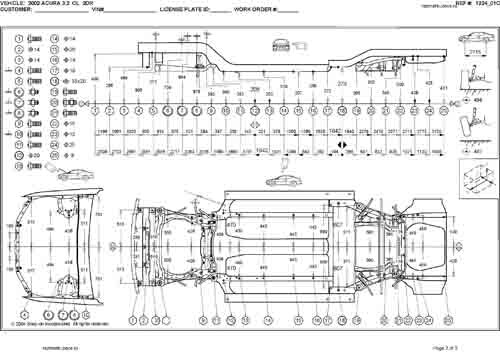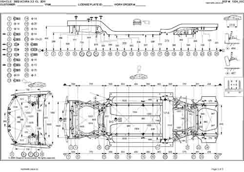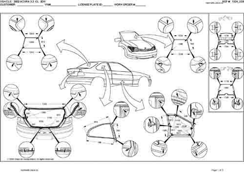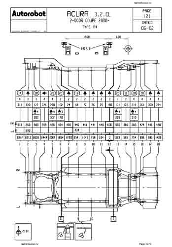 - Геометрические размеры кузова ACURA 3.2CL (YA4) 2000-2003, как проекционные, так и непосредственного измерения, в том числе диагональные размеры проемов кузова и контрольные точки для восстановления геометрии кузова.