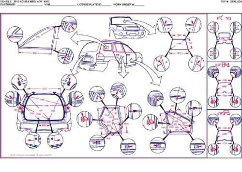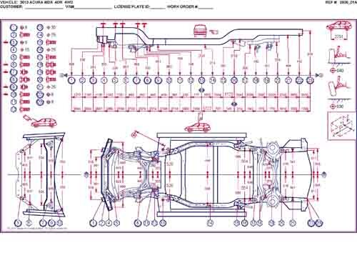 - Геометрические размеры кузова ACURA MDX (YD2) 2006-2010-2013, как проекционные, так и непосредственного измерения, в том числе диагональные размеры проемов кузова и контрольные точки для восстановления геометрии кузова Акура MDX.