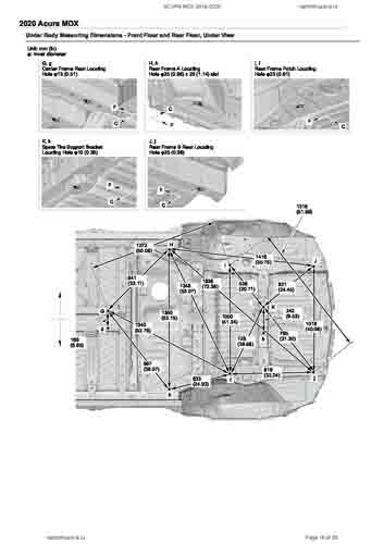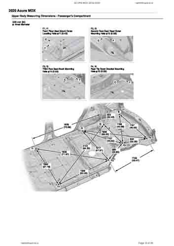 - Геометрические размеры кузова ACURA MDX (YD3) 2013-2016-2020, как проекционные, так и непосредственного измерения, в том числе диагональные размеры проемов кузова и контрольные точки для восстановления геометрии кузова.