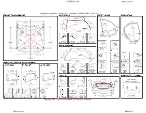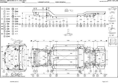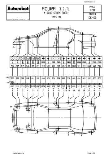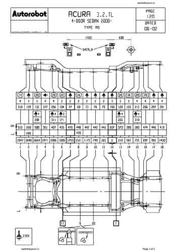 - Геометрические размеры кузова ACURA 3.2TL 1998-2001-2003, как проекционные, так и непосредственного измерения, в том числе диагональные размеры проемов кузова и контрольные точки для восстановления геометрии кузова.