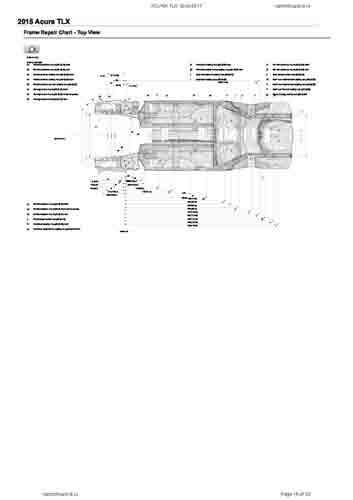 - Геометрические размеры кузова ACURA TLX 2014-2017–2020, как проекционные, так и непосредственного измерения, в том числе диагональные размеры проемов кузова и контрольные точки для восстановления геометрии кузова.