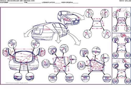 - Геометрические размеры кузова ACURA ZDX (YB1) 2009-2013, как проекционные, так и непосредственного измерения, в том числе диагональные размеры проемов кузова и контрольные точки для восстановления геометрии кузова Акура ZDX.