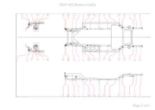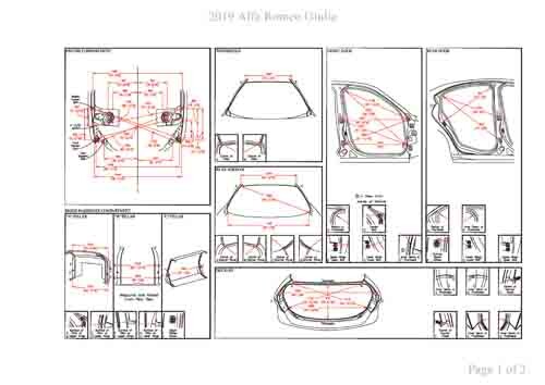 - Геометрические размеры кузова ALFA ROMEO Giulia (952) 2016--, как проекционные, так и непосредственного измерения, в том числе диагональные размеры проемов кузова и контрольные точки для восстановления геометрии кузова.