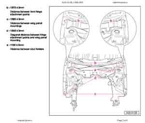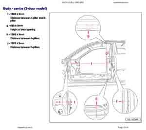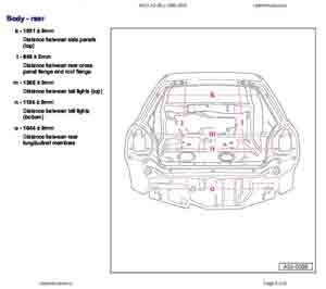 - Из заводского руководства по ремонту кузова AUDI A3 (8L) 1996-2005, в том числе размеры проемов. Дополнительно приведены величины допустимых зазоров кузовных панелей. Производитель предупреждает: "Все размеры используются только для проверки; точные