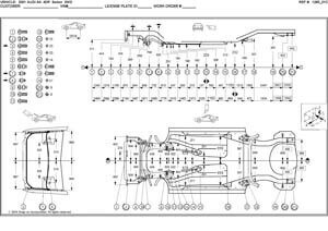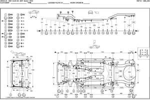 - Проекционные геометрические размеры кузова Ауди А4 с привязкой к стапелю.