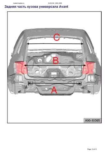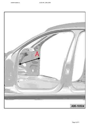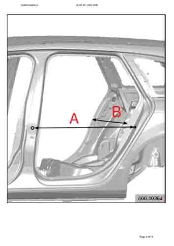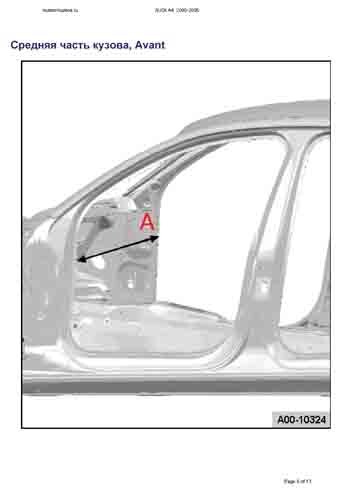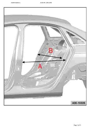 - Из заводского руководства по ремонту кузова AUDI A4 (B6/8E) 2000-2005, в том числе размеры проемов. Дополнительно даны сведения о допустимых зазорах кузовных панелей.