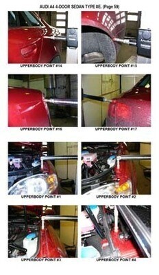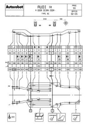 - Проекционные геометрические размеры кузова AUDI A4 (B7/8E) 2004-2007 с привязкой к стапелю. Дополнительно приведены цветные фотографии мест расположения контрольных точек на реальном автомобиле.