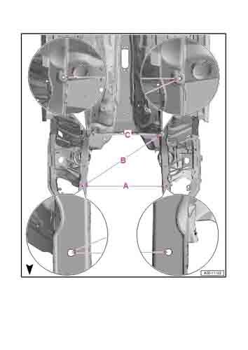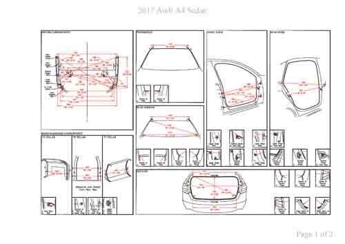 - Геометрические размеры кузова AUDI A4 Sedan, как проекционные, так и непосредственного измерения, в том числе диагональные размеры проемов кузова и контрольные точки для восстановления геометрии кузова.