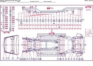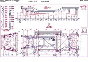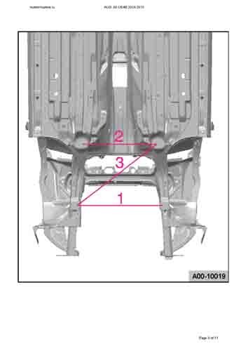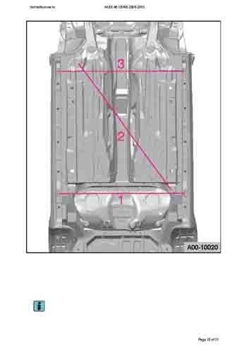 - Геометрические размеры для моделей Sedan и Avant Quattro Wagon, как проекционные, так и непосредственного измерения, в том числе диагональные размеры проемов кузова, в том числе диагональные размеры проемов кузова и контрольные точки для восстановления геометрии кузова AUDI A6.