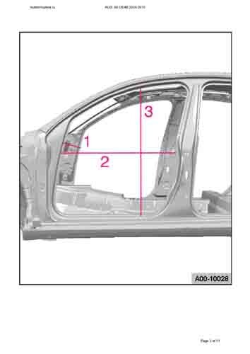 - Из заводского руководства по ремонту кузова AUDI A6 (C6/4F) 2004-08-2010, в том числе размеры проемов. Дополнительно даны сведения о допустимых зазорах кузовных панелей.