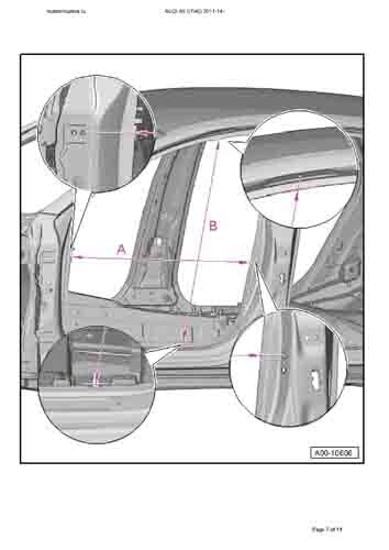 - Из заводского руководства по ремонту кузова AUDI A6 (C7 4G) 2011-2014-2018, в том числе размеры проемов. Дополнительно даны сведения о допустимых зазорах кузовных панелей.
