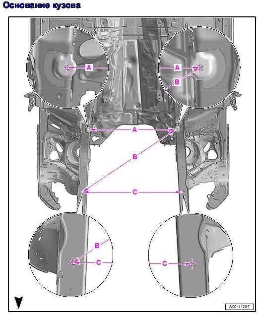 - Из заводского руководства по ремонту кузова AUDI A6 (C8/4A) 2019-2026, в том числе размеры проемов. Производитель предупреждает: "Все размеры используются только для проверки; точные размеры задаются стапелем. "Обратите внимание на миниатюры - изготовитель предоставил не очень полные данные по размерам.
