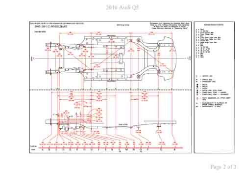 - Геометрические размеры кузова AUDI Q5 2008-2016, как проекционные, так и непосредственного измерения, в том числе диагональные размеры проемов кузова и контрольные точки для восстановления геометрии кузова AUDI Q5.