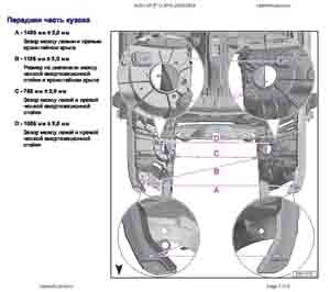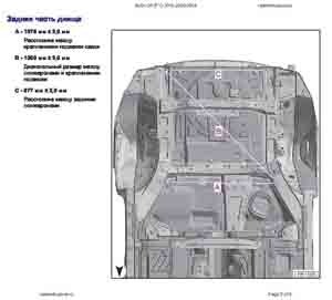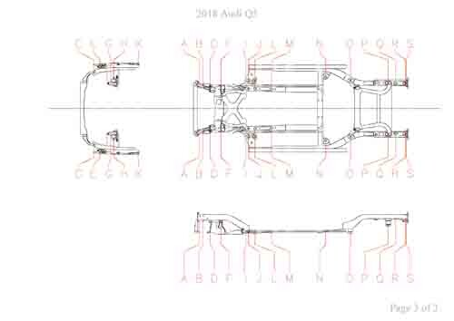 - Геометрические размеры кузова AUDI Q5 (FY) 2016-2020-2024, как проекционные, так и непосредственного измерения, в том числе диагональные размеры проемов кузова и контрольные точки для восстановления геометрии кузова.