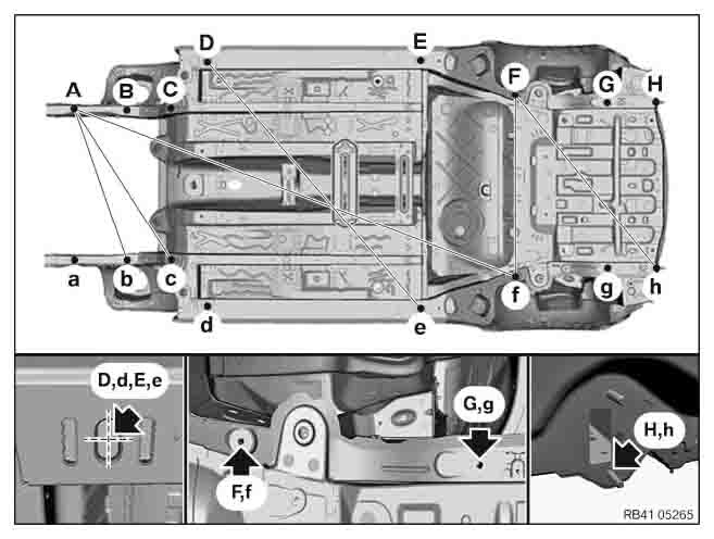 Контрольные кузовные размеры из официального руководства по ремонту кузова BMW 1 (F40) 2019–1924.