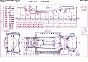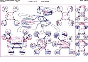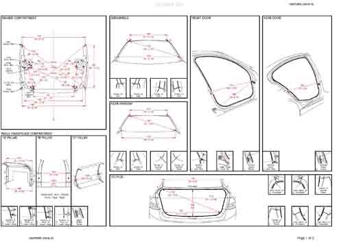 Контрольные кузовные размеры из официального руководства по ремонту кузова BMW 3 (F30) 2012-2015-2018. Дополнительно приведены величины зазоров кузовных панелей. Пояснения к чертежам автоматически переведены на русский язык. Обратите внимание: информация довольно скудна. В галерее представлены ВСЕ имеющиеся чертежи. Производитель предупреждает: "Все размеры используются только для проверки; точные размеры задаются стапелем."