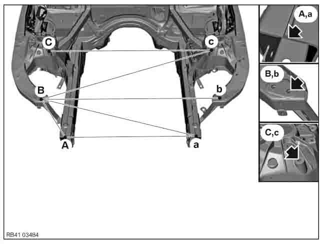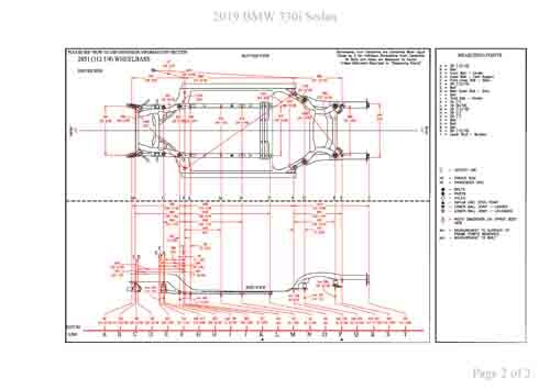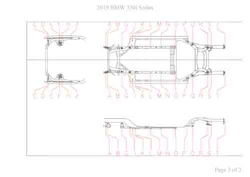 - Геометрические размеры кузова BMW 3 (G20) 2018-2022-2024--, как проекционные, так и непосредственного измерения, в том числе диагональные размеры проемов кузова и контрольные точки для восстановления геометрии кузова.