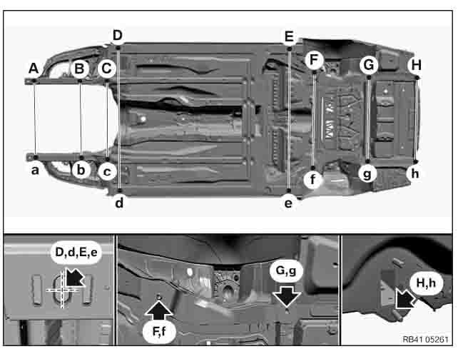 Контрольные кузовные размеры из официального руководства по ремонту кузова BMW 5 (G60) Sedan 2023--. Дополнительно приведены величины зазоров кузовных панелей. Пояснения к чертежам автоматически переведены на русский язык. Обратите внимание: информация довольно скудна. В галерее представлены ВСЕ имеющиеся чертежи. Производитель предупреждает: "Все размеры используются только для проверки; точные размеры задаются стапелем."