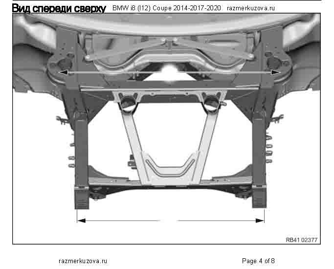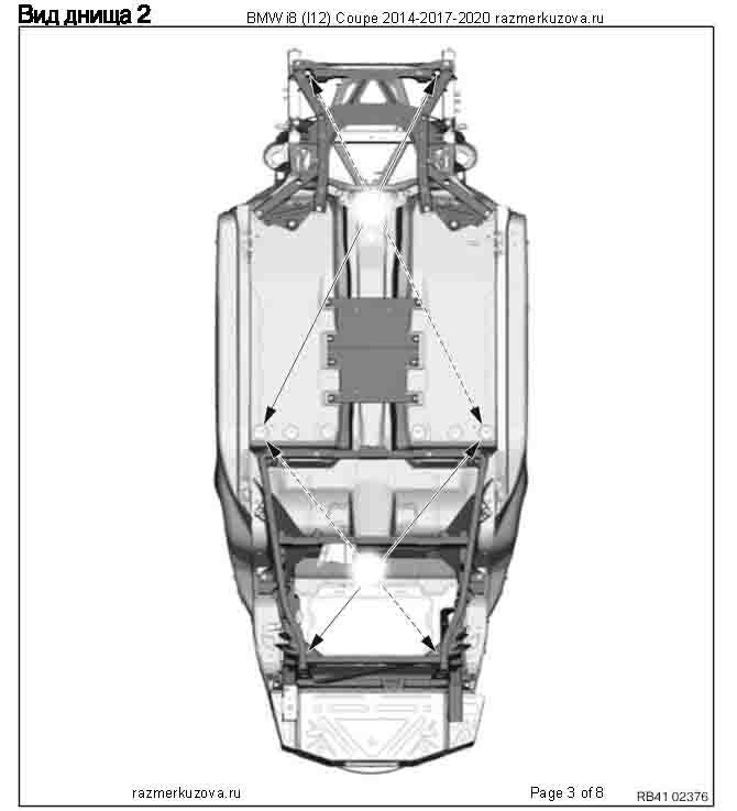 Контрольные кузовные размеры из официального руководства по ремонту кузова BMW i8 (I12) Coupe 2014-2017-2020. Дополнительно приведены величины зазоров кузовных панелей. Пояснения к чертежам автоматически переведены на русский язык. Обратите внимание: информация довольно скудна. В галерее представлены ВСЕ имеющиеся чертежи. Производитель предупреждает: "Все размеры используются только для проверки; точные размеры задаются стапелем."