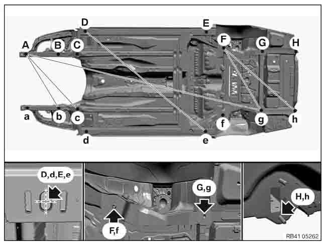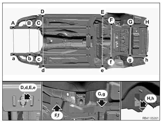 Контрольные кузовные размеры из официального руководства по ремонту кузова BMW M5 (G99) Touring 2024--. Дополнительно приведены величины зазоров кузовных панелей. Пояснения к чертежам автоматически переведены на русский язык. Обратите внимание: информация довольно скудна. В галерее представлены ВСЕ имеющиеся чертежи. Производитель предупреждает: "Все размеры используются только для проверки; точные размеры задаются стапелем."
