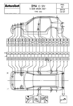 - Размеры кузова для автомобилей BMW X3 2003-2010, как проекционные, так и непосредственного измерения, в том числе диагональные размеры проемов кузова.