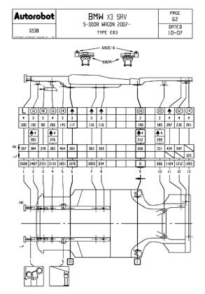 Контрольные кузовные размеры BMW X3 (E83) 2003-2010: