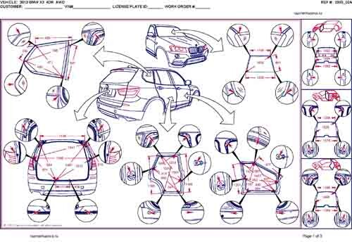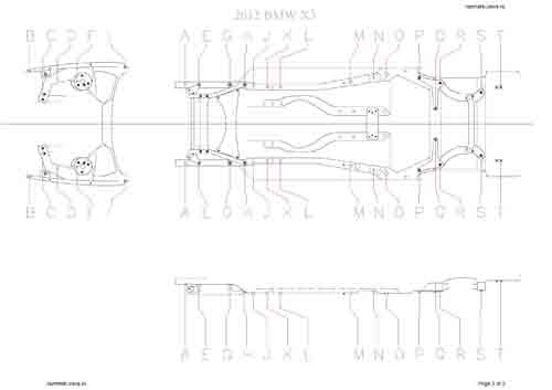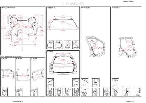 - Размеры кузова для автомобилей BMW X3, как проекционные, так и непосредственного измерения, в том числе диагональные размеры проемов кузова.