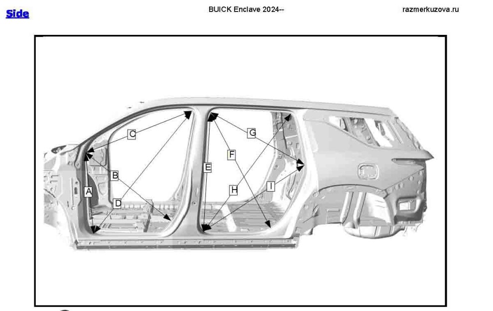 Контрольные кузовные размеры из официального руководства по ремонту кузова BUICK Enclave 2024--, в том числе диагональные размеры проемов кузова. Обратите внимание: информация довольно скудна. В галерее представлены ВСЕ имеющиеся чертежи.