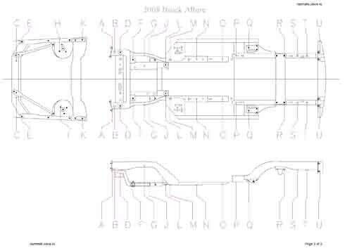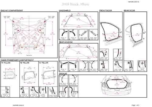 - Геометрические размеры кузова BUICK LaCrosse / Allure 2005-2009, как проекционные, так и непосредственного измерения, в том числе диагональные размеры проемов кузова и контрольные точки для восстановления геометрии кузова.