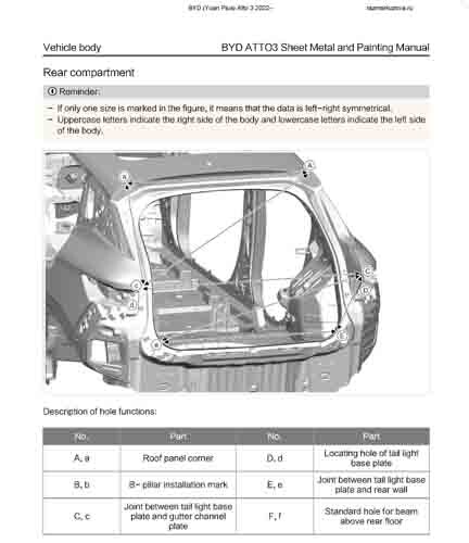 Контрольные размеры кузова для автомобилей BYD (Yuan Plus) Atto 3 2022-- из заводского руководства по ремонту кузова, в том числе размеры проемов кузова.