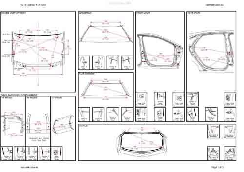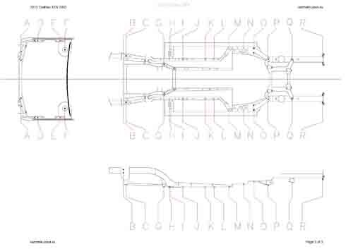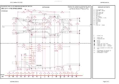 - Геометрические размеры кузова CADILLAC XTS 2012-2019, как проекционные, так и непосредственного измерения, в том числе диагональные размеры проемов кузова и контрольные точки для восстановления геометрии кузова.