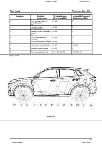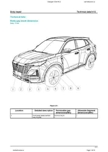 Контрольные размеры кузова для автомобилей CHANGAN CS55 Plus (S203) 2019-- из заводского руководства по ремонту кузова, в том числе размеры проемов кузова. Дополнительно приведены сведения о допустимых зазорах кузовных панелей. После ребрендинга в 2024 году данный кроссовер предлагается в России под новым именем UNI-S.
