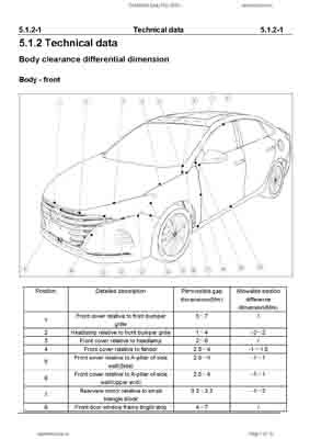 Контрольные размеры кузова для автомобилей CHANGAN Eado Plus (C211) 2020-- из заводского руководства по ремонту кузова, в том числе размеры проемов кузова. Дополнительно приведены сведения о допустимых зазорах кузовных панелей.