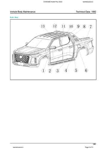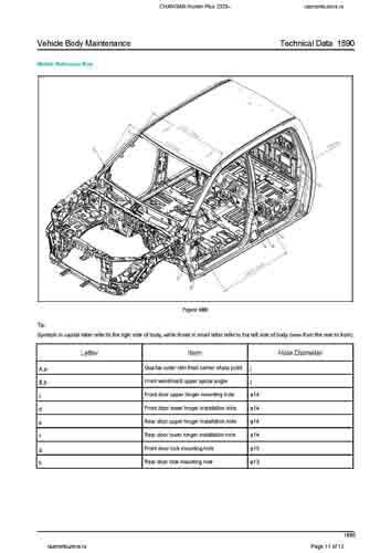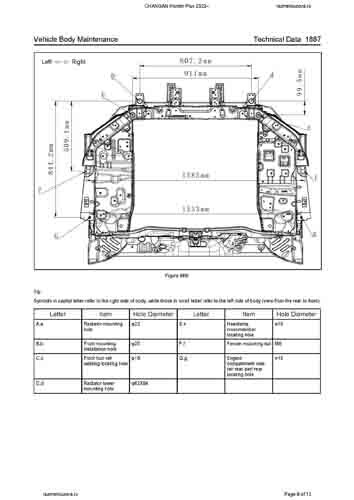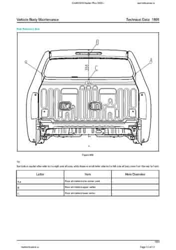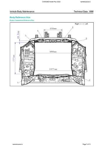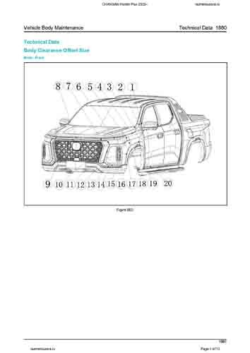 Контрольные размеры кузова для автомобилей CHANGAN Hunter Plus 2023-- из заводского руководства по ремонту кузова, в том числе размеры проемов кузова. Дополнительно приведены сведения о допустимых зазорах кузовных панелей. Описание на английском языке. Этот пикап создан совместно с концерном Stellantis и аналогичен Peugeot Landtrek и Fiat Titano.