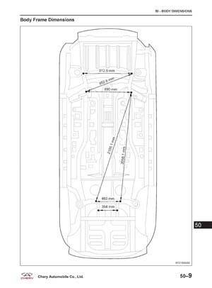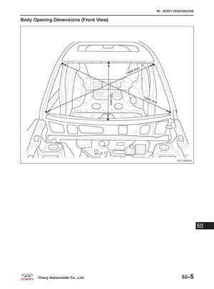 Контрольные кузовные размеры CHERY Tiggo5 (T21) 2013--: