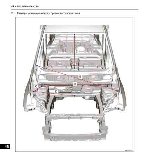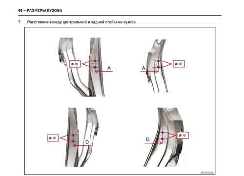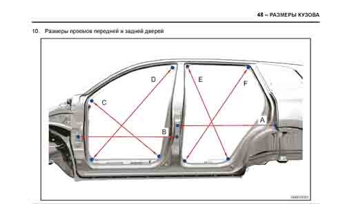 Контрольные кузовные размеры из заводского руководства по ремонту кузова CHERY Tiggo 8 (T18) 2018-2022--, в том числе размеры проемов кузова.