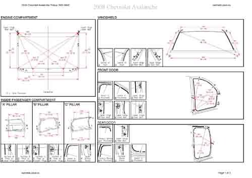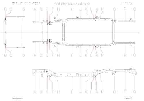 - Геометрические размеры кузова CHEVROLET Avalanche (GMT900) 2006-2013, как проекционные, так и непосредственного измерения, в том числе диагональные размеры проемов кузова и контрольные точки для восстановления геометрии кузова.