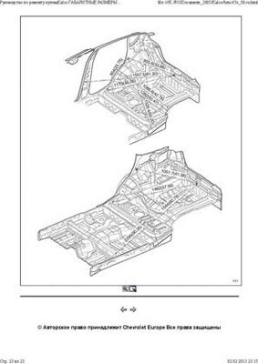 - Из заводского руководства по ремонту кузова, в том числе диагональные размеры проемов кузова и контрольные точки для восстановления геометрии кузова Шевроле Авео.