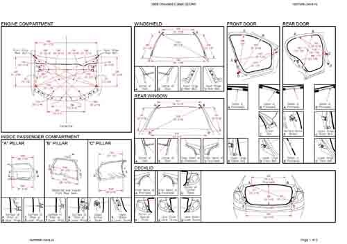 - Геометрические размеры кузова Chevrolet Cobalt, как проекционные, так и непосредственного измерения, в том числе диагональные размеры проемов кузова и контрольные точки для восстановления геометрии кузова. Модели Sedan и Coupe.