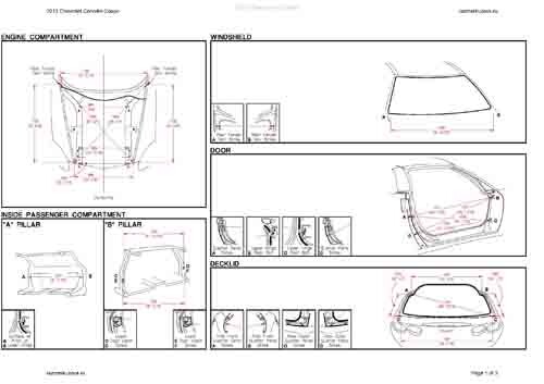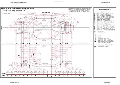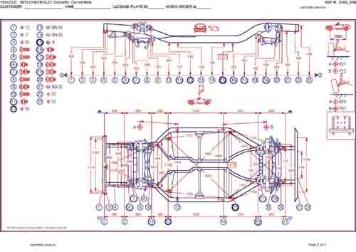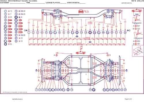 - Геометрические размеры кузова CHEVROLET Corvette 2004-2014, как проекционные, так и непосредственного измерения, в том числе диагональные размеры проемов кузова и контрольные точки для восстановления геометрии кузова.