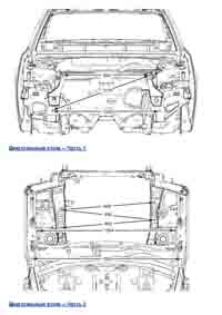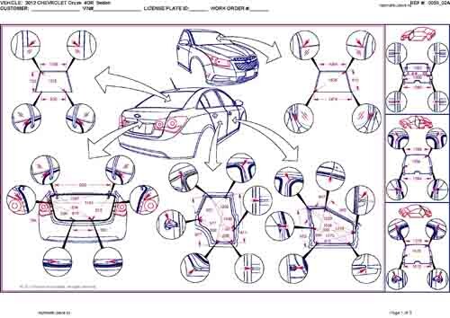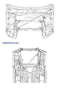 - Из заводского руководства по ремонту кузова Chevrolet Cruze Body Repair Manual, в том числе диагональные размеры проемов кузова и контрольные точки для восстановления геометрии кузова Шевроле Круз.