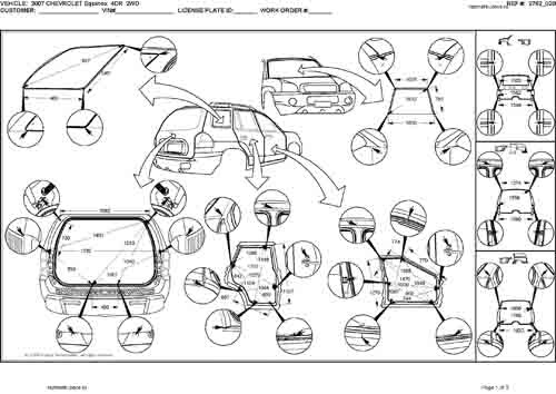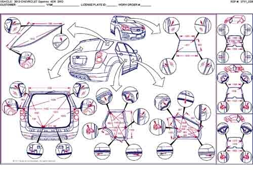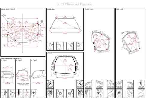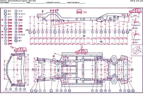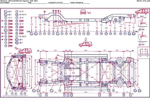 - Геометрические размеры кузова CHEVROLET Equinox 2009–2015, как проекционные, так и непосредственного измерения, в том числе диагональные размеры проемов кузова и контрольные точки для восстановления геометрии кузова.