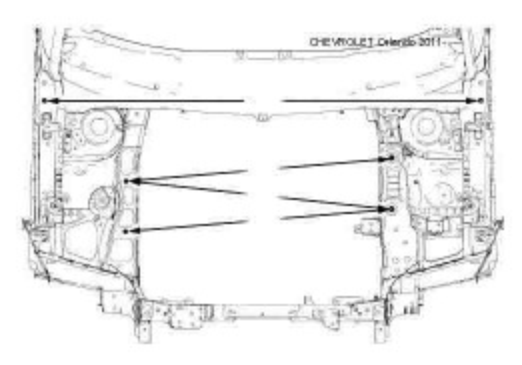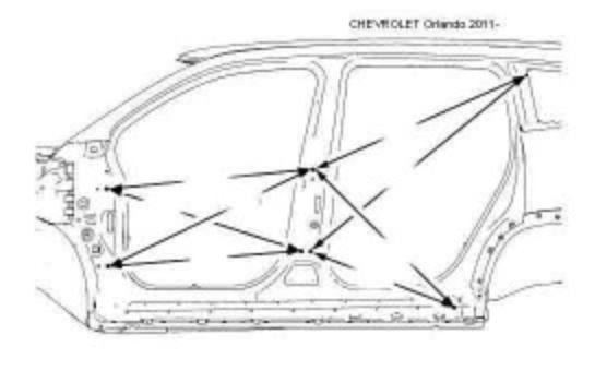 Контрольные кузовные размеры CHEVROLET Orlando 2010-2018: