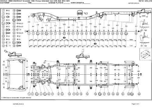 - Геометрические размеры кузова CHEVROLET Silverado (GMT800) 1998-2003-2007, как проекционные, так и непосредственного измерения, в том числе диагональные размеры проемов кузова и контрольные точки для восстановления геометрии кузова.