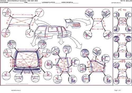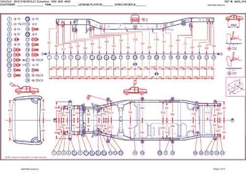 - Геометрические размеры кузова CHEVROLET Suburban 2007-2013, как проекционные, так и непосредственного измерения, в том числе диагональные размеры проемов кузова и контрольные точки для восстановления геометрии кузова.