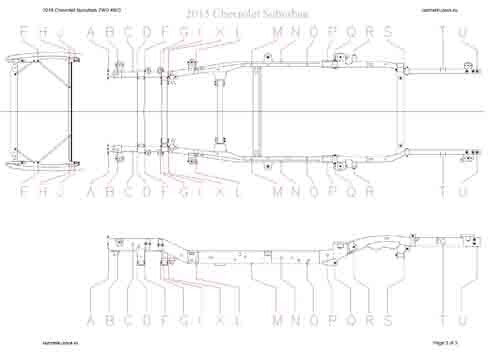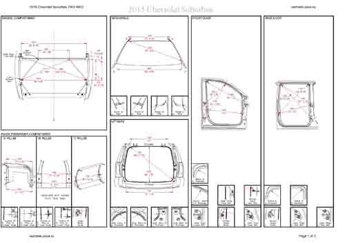 - Геометрические размеры кузова CHEVROLET Suburban 2014-2020, как проекционные, так и непосредственного измерения, в том числе диагональные размеры проемов кузова и контрольные точки для восстановления геометрии кузова.