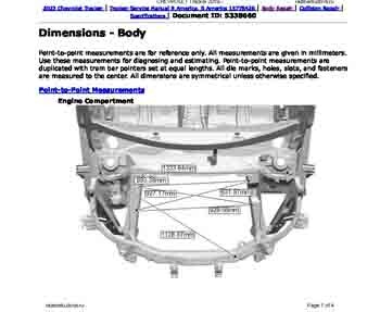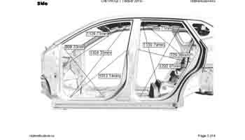 Контрольные кузовные размеры из официального руководства по ремонту кузова CHEVROLET Tracker 2019--, в том числе диагональные размеры проемов кузова. Обратите внимание: информация довольно скудна. В галерее представлены ВСЕ имеющиеся чертежи.
