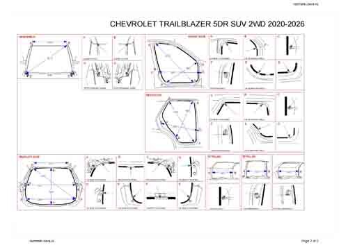 Контрольные размеры кузова для автомобилей CHEVROLET Trailbazer 2020--из заводского руководства по ремонту кузова, в том числе размеры проемов кузова.