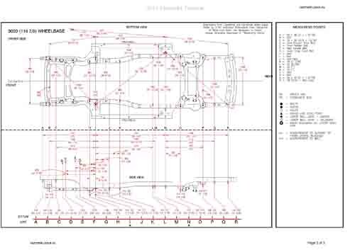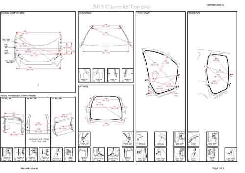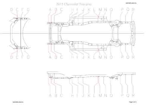 - Геометрические размеры кузова CHEVROLET Traverse 2008-2012-2017, как проекционные, так и непосредственного измерения, в том числе диагональные размеры проемов кузова и контрольные точки для восстановления геометрии кузова.