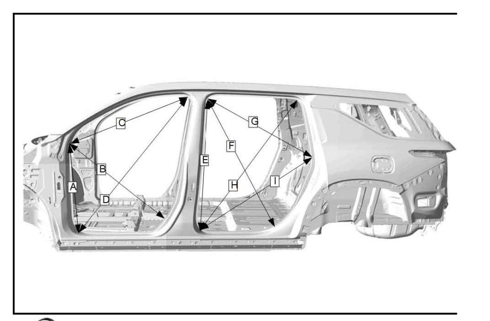 Контрольные кузовные размеры из официального руководства по ремонту кузова CHEVROLET Traverse 2024--, в том числе диагональные размеры проемов кузова. Обратите внимание: информация довольно скудна. В галерее представлены ВСЕ имеющиеся чертежи.